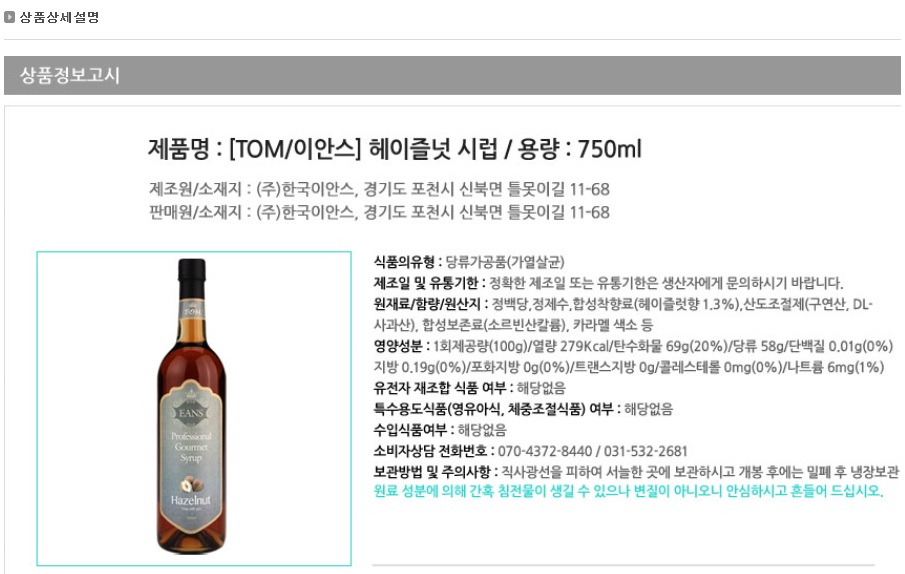 헤이즐럿 시럽